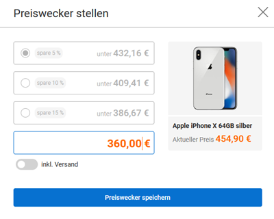 Preiswecker Nicht nur die Preisentwicklung kannst du bspw. auf Idealo.de verfolgen, sondern auch direkt einen Wecker (sog. Preiswecker) stellen. Der Preiswecker bietet bspw. mehrere Preise samt prozendualen Rabatt an – du kannst natürlich auch einen eigenen Wunschpreis angeben.