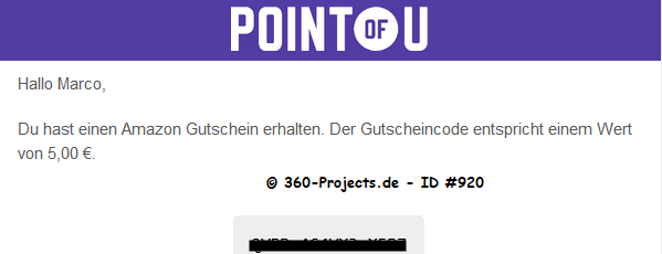 Verdienst/Länge: 0,80€ – 10 Minuten 1,00€ pro geworbenen User 1000 Punkte = 10€ netter Support Auszahlung ab 10€ per Gutscheine und Spende Gutscheinanbieter: Amazon, myToys, Eventim, Media Marktu.v.m.! Anbieter erlaubt nur Einladungen via E-Mail. Unterstütze mich und bitte um Einladung an admin@360-projects.de – Vielen Dank |