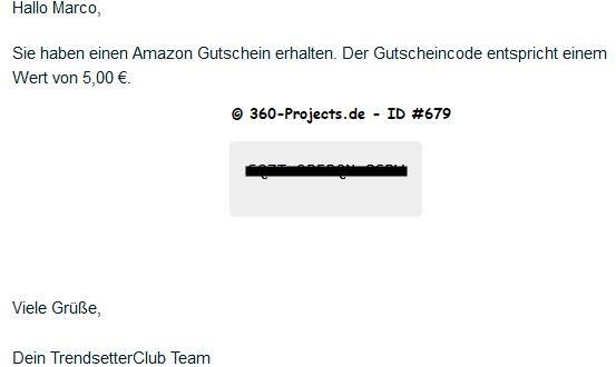 regelmäßige Umfragen Profilangaben werden vergütet gelegentlich bezahlte Quizze Zusatzverdienste durch Standortfreigabe (optional) Zusatzverdienste durch Mikrofonfreigabe (optional) 0,05€ für jede geworbene Person* Auszahlung ab 5,00€ per Amazon oder Zalando Gutschein ab 10,00€ per Saturn, Douglas, Ikea oder Spofity Gutschein und ab 15,00€ per Adidas Gutschein * Un Um den Werbebonus i.H.v. 0,05€ zu erhalten muss sich die Person registrieren, ihr Profil ausfüllen, das Profilbild ändern, Standort,- und Mikro-Erlaubnis geben und min. 7 Tage aktiv bleiben. |